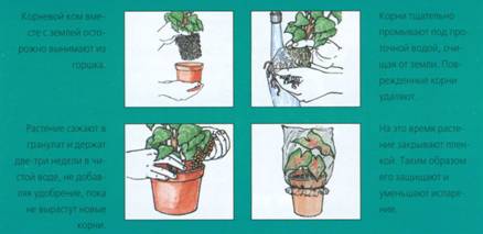 Для перехода нужно прежде всего тщательно смыть с корней всю землю. Поврежденные корни удаляют. Потом растение осторожно сажают в субстрат и держат две-три недели в чистой воде, не добавляя удобрения, пока не вырастут новые корешки. Чтобы уменьшить испарение, растение защищают в это время пластиковой пленкой.