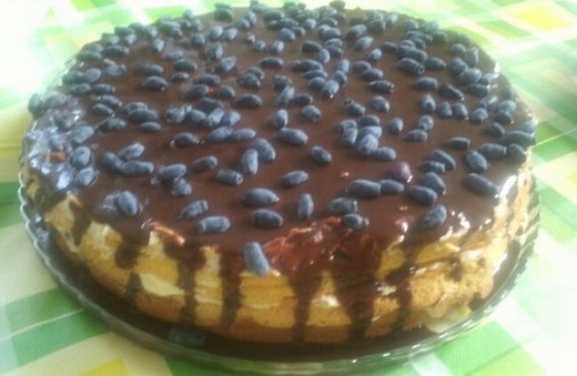 Подогреть в кастрюле полстакана воды, 100 г маргарина, добавить 3 ст. л. сахара и 1/2 ч. л. соли, 2 яйца и 2 стакана муки, в которую добавлены полпакета сухих дрожжей. Замесить тесто и выдержать в теплом месте 2 часа, обмять и раскатать на противне в лепешку 1 см толщиной. Дать слегка подняться, присыпать картофельным крахмалом и рассыпать подвяленные ягоды жимолости (или джем), посыпав их сахаром - примерно % стакана. Приготовить штрейзель - мучнисто-масляные крошки из 4 ст. л. муки, 80 г масла, 4 ст. л. песка и 4 желтков. На посыпанный мукой стол положить кусочки масла и желтки, перемешанные с сахаром. Перемешать составляющие вилкой в муке до получения крупных крошек. Засыпать штрейзелем ягоды и запечь пирог в духовке при температуре 240°С в течение 30 минут.